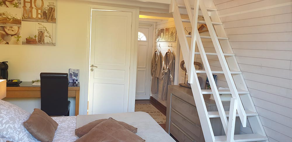 Située au Rez-de-chaussée, la chambre libellule possède une entrée indépendante, un lit de 160, une télévision, la climatisation. Elle dispose d'une mezzanine uniquement conçue pour des adolescents. Le supplément est de 15€ par lit et par nuit.